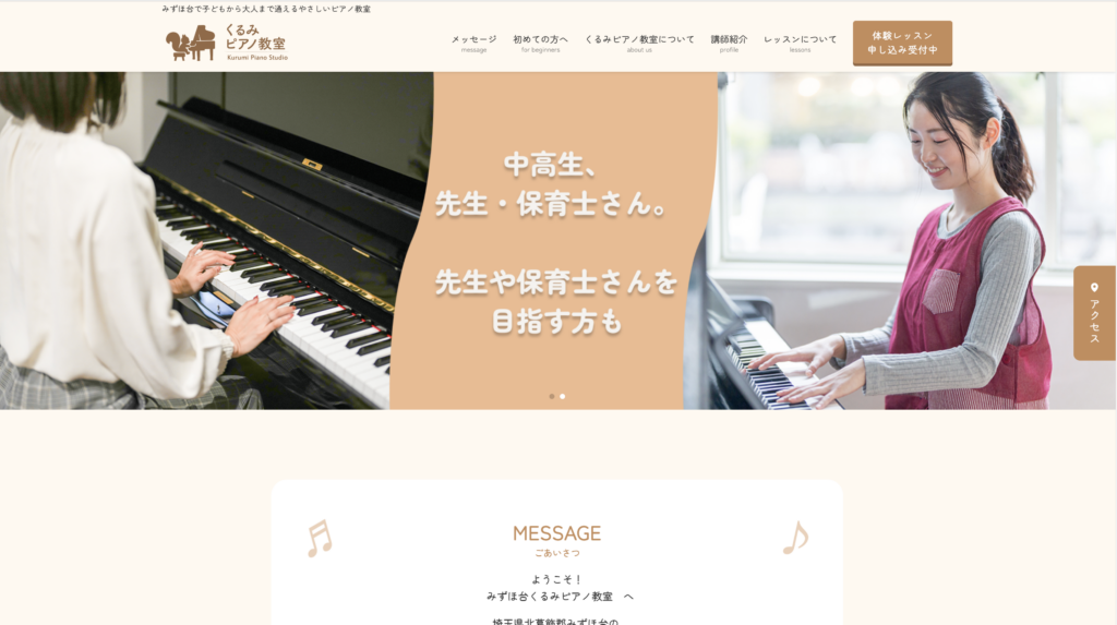 ピアノ教室・習い事教室専門のホームページ制作をしています